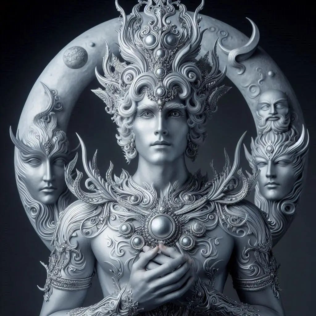 Every three years, Ashira passes before him for three consecutive nights — the Occlusion — during which Isen travels to the astral plane so his son Thorm can visit his mother, an astral nymph who raised the boy on another plane entirely. It is, I admit, a surprisingly tender detail for a god otherwise characterized by cold distance and unpredictable storms. But I think gods should have private lives.