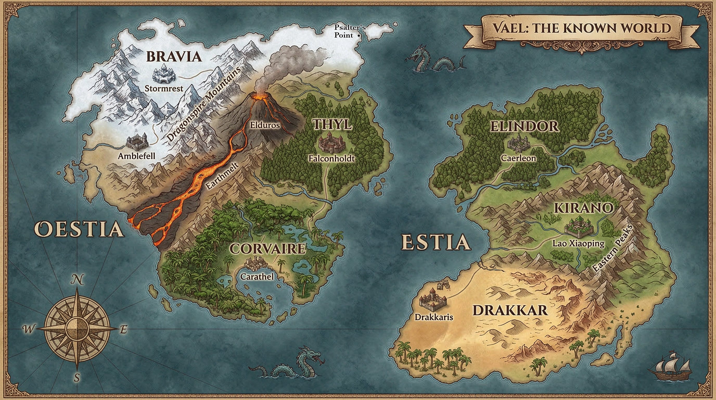 Vael has six human nations, split across two continents. Here’s what you need to know about each of them — and a little about the world they share.