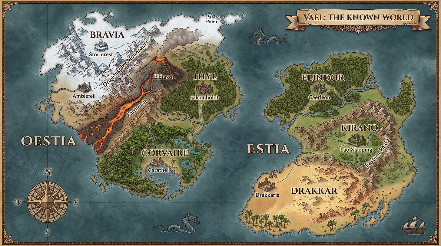 One of the quieter pleasures of building a fantasy world is deciding what kind of people it produces. Geography shapes culture. Climate shapes character. The same human impulses — toward beauty, toward power, toward belonging — express themselves differently depending on whether you grew up in a frozen highland or a coastal jungle or a city older than most nations.
