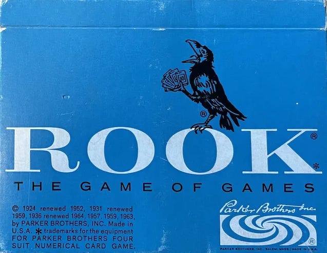 We were a family that played games together. Some board games, sure—but mostly card games. Parker Brothers decks were regularly spread across our table, and Rook was one of our favorites.