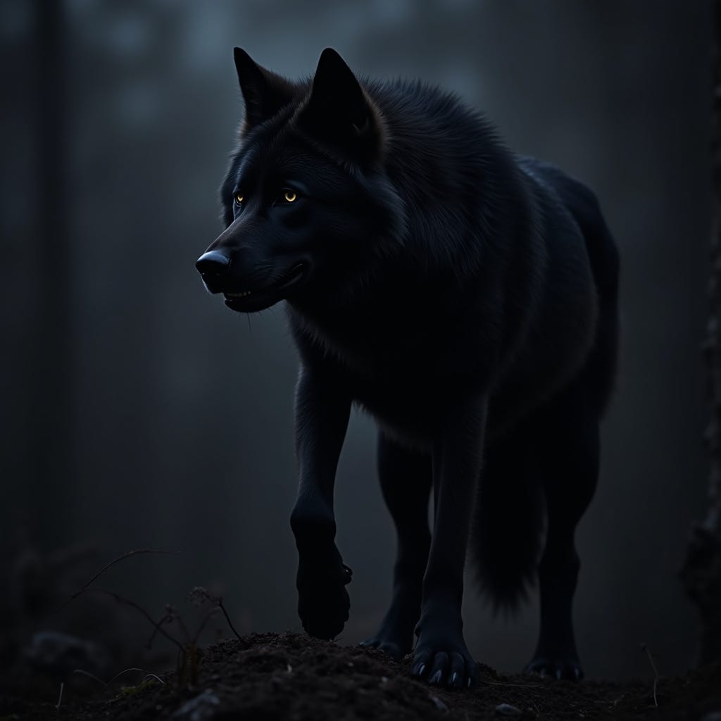 The black shape lunged after her, blurring past Rosie in a streak of muscle and shadow. As it passed, it turned its head.