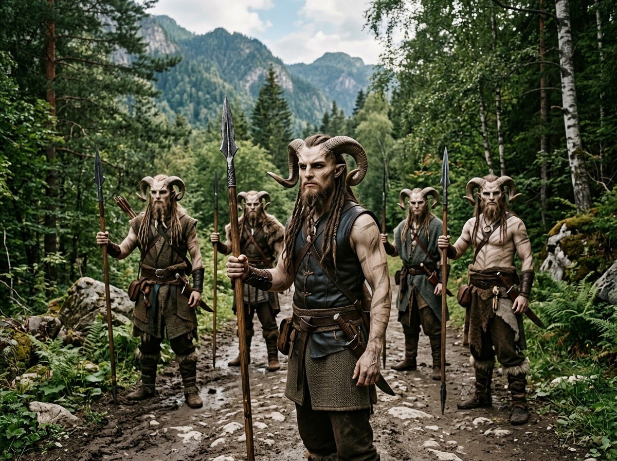 Benedict had just finished removing the backstraps when six Urukesh appeared at the bend in the road, about two hundred yards distance. Scarlet saw them first.