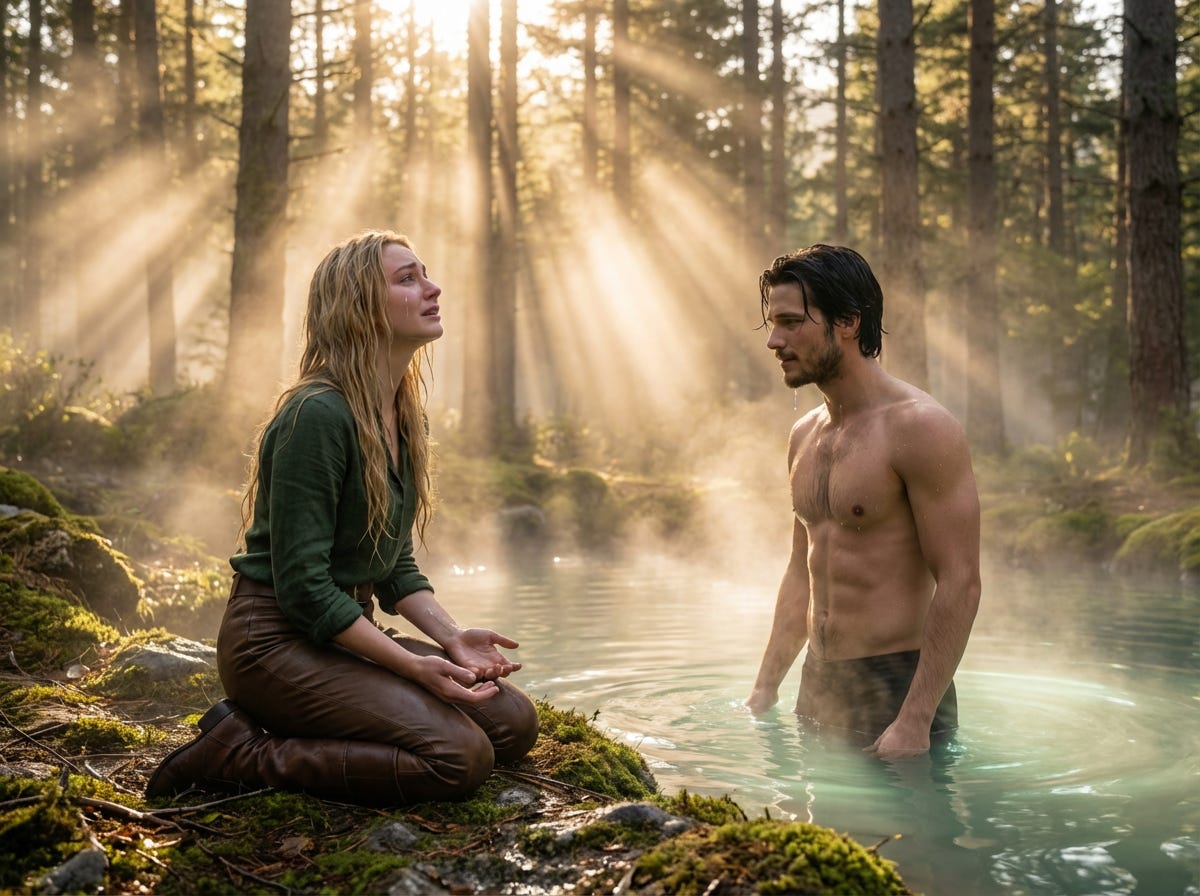 When they finally stopped, neither of them moved far. His forehead came down to rest against hers. Her hands were still at his chest. The water steamed around them. Somewhere beyond the treeline, people were waiting, and neither of them cared even slightly.