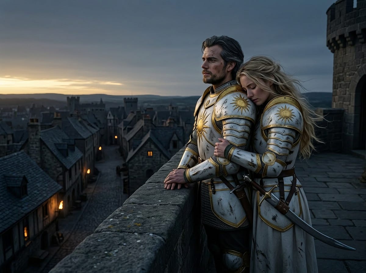 Below, in the old quarter, the street was quiet. The torches in the windows below were still burning, small and steady, the city’s own light holding against the dark. Above, the night sky was beginning to lighten at its eastern edge, the first grey of a dawn arriving the way it always did — on schedule, without drama, indifferent to what it was arriving into.